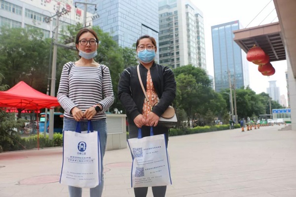 甘肅安卓工作人員熱情服務(wù)為市民發(fā)放宣傳物料中